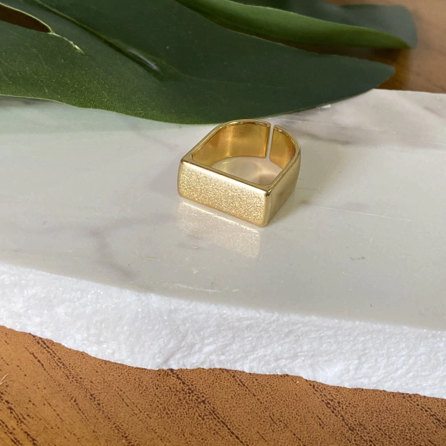 Anéis são acessórios marcantes, capazes de adicionar estilo ao seu look. Este é ajustável e em formato quadrado, formando um anel mais grosso, proporcionando volume na mão.