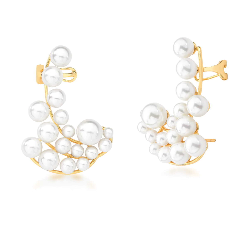 Estilo único e moderno! O Brinco Ear Cuff com Pérolas Shell, banhado a ouro 18k, traz um toque ousado e sofisticado ao seu look.