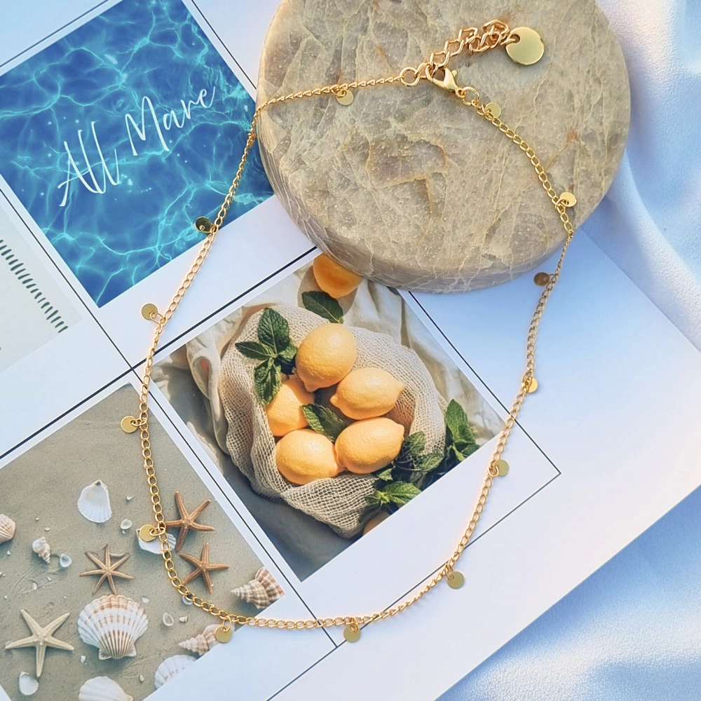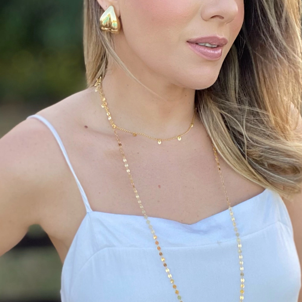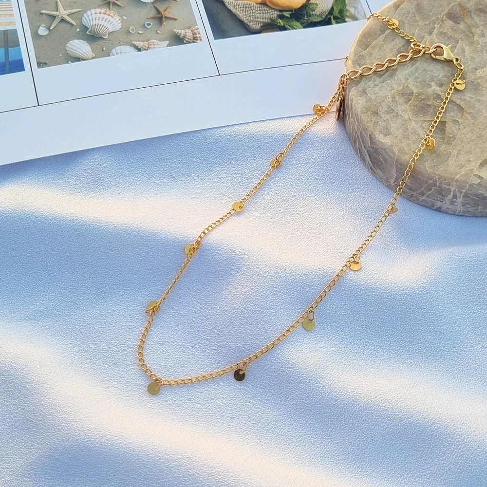 Uma Chockerr versátil e delicada com medalhinhas banhadas a ouro 18k. Seu design moderno traz um toque sofisticado e atual, perfeito para iluminar o colo com estilo. Versátil, pode ser usado tanto em looks casuais quanto em produções sofisticadas, destacando a beleza natural de quem o usa.