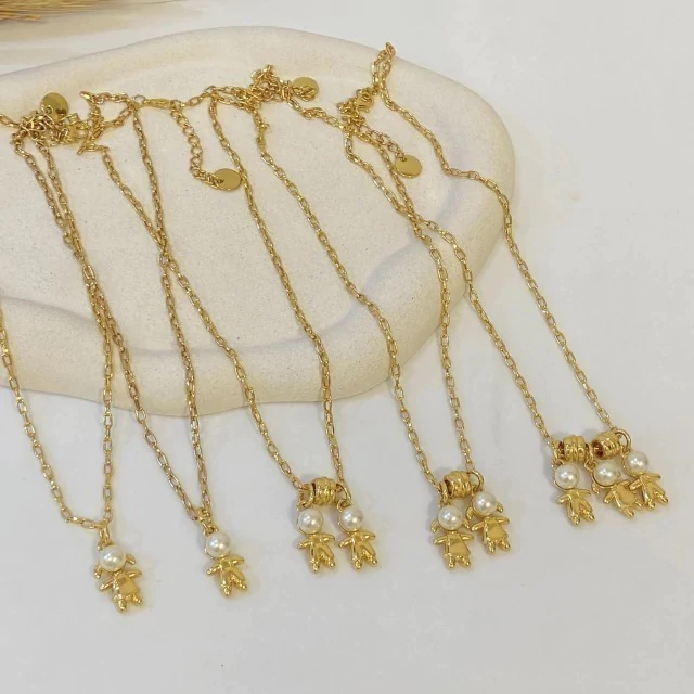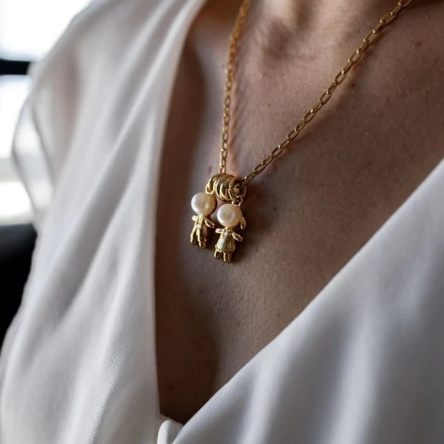 Delicado e cheio de significado, o Colar Filhos traz o pingente de filhos com detalhes em pérola que iluminam a composição. Uma homenagem sutil e elegante ao amor materno, com toque moderno e sofisticado. Ideal para eternizar vínculos com leveza e estilo.