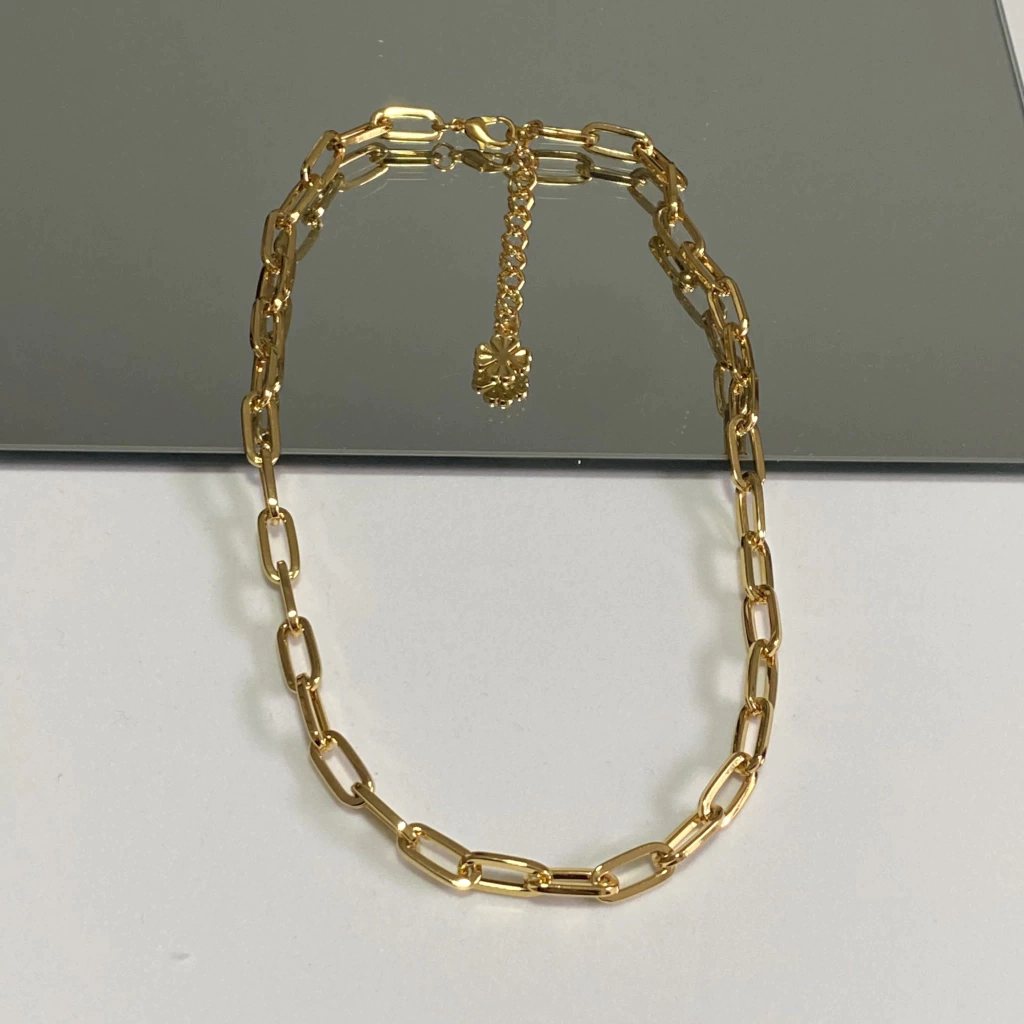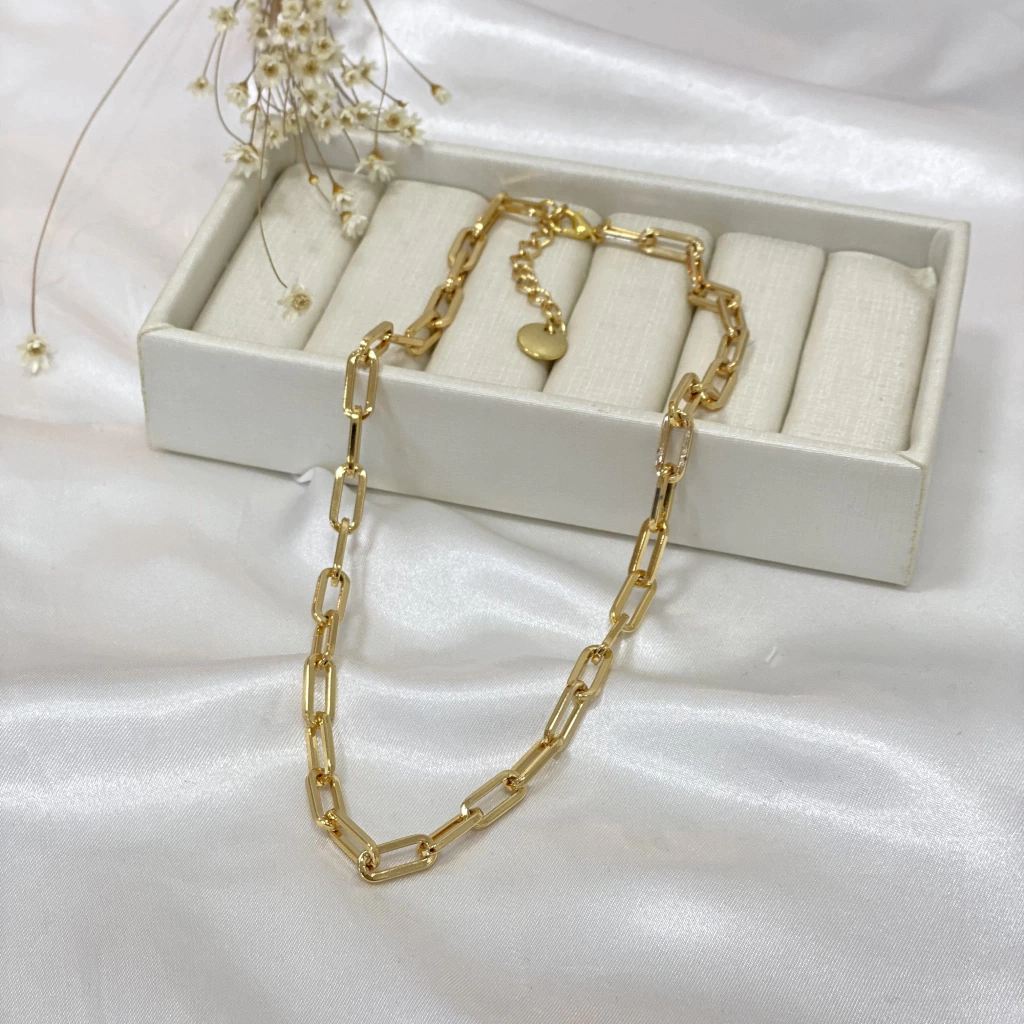 O colar Silvana é simplesmente um poder! Traz consigo um olhar moderno e único, com uma corrente de elos ovais no banho ouro 18k. Com certeza esse acessório vai deixar seu look de presença e irá atrair olhares. Combine esse colar com brincos, colares longos e pulseiras com correntaria para criar um mix incrível. Arrase por onde passar! Confira no site toda coleção que está imperdível!